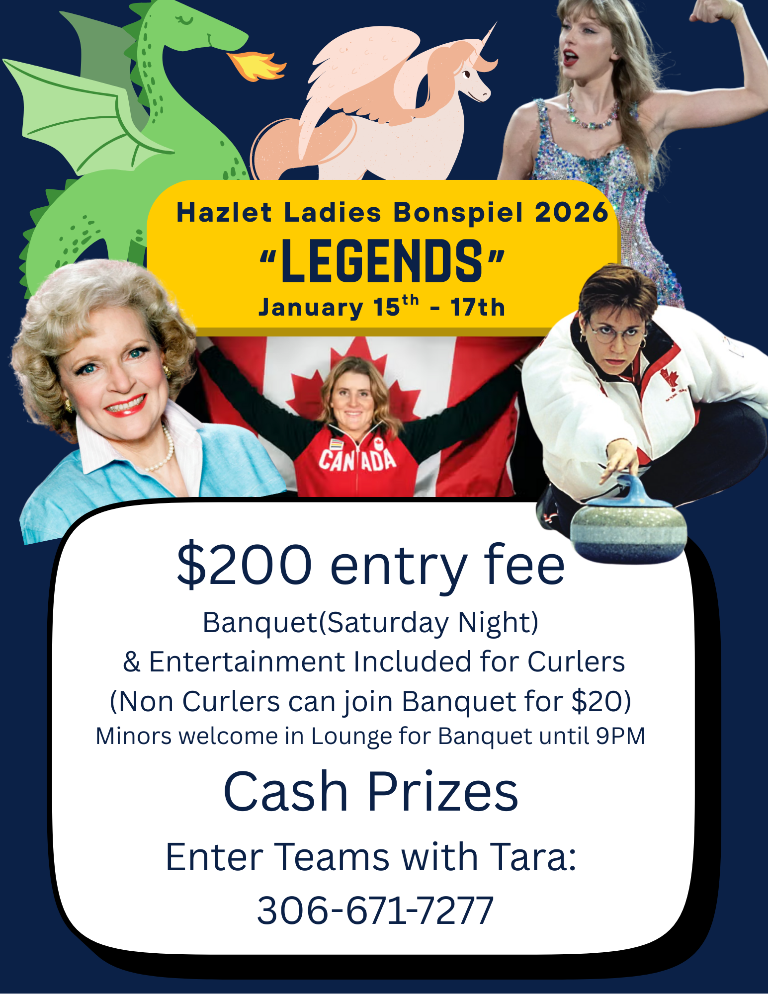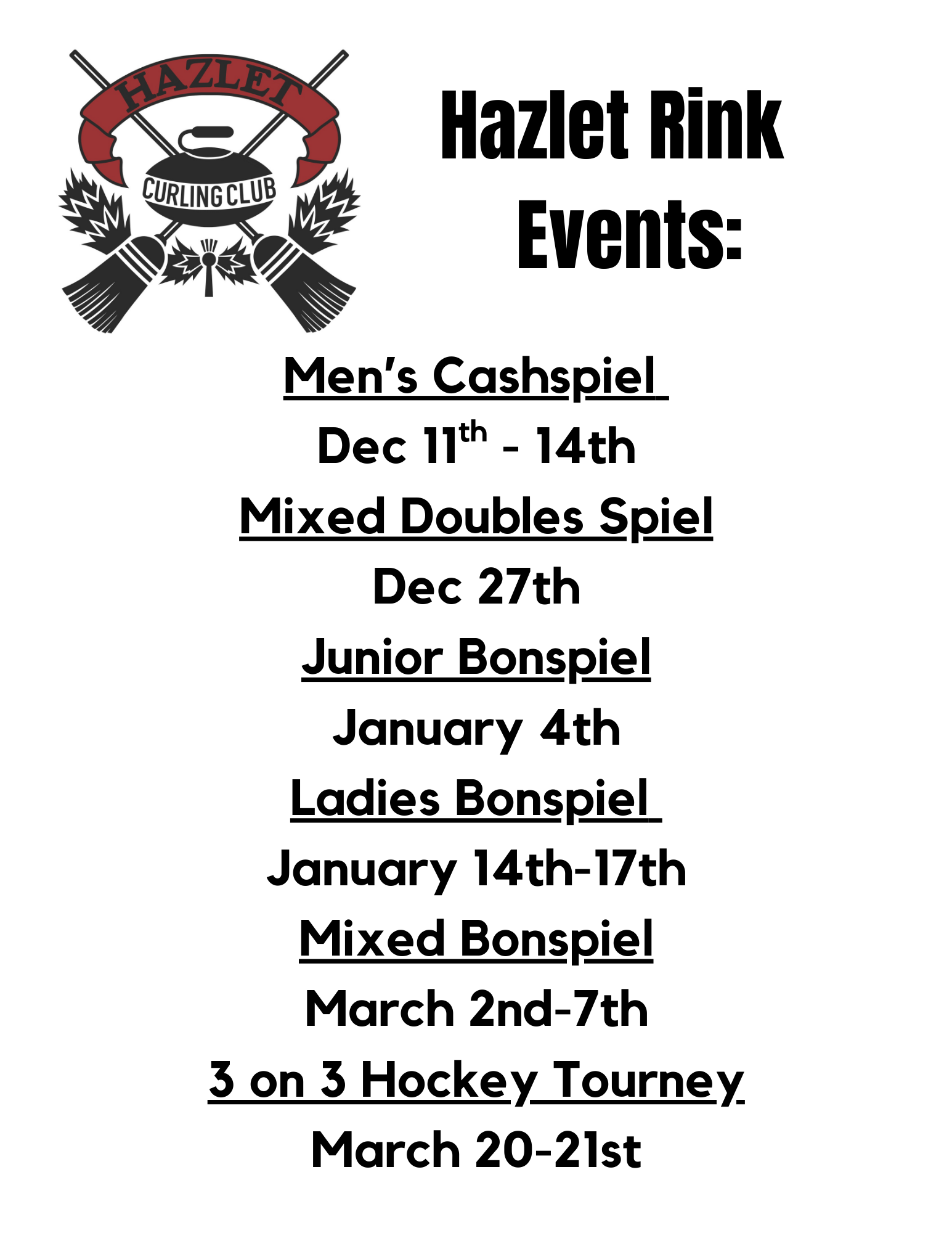 Hazlet Ladies Bonspiel kicks off during the week (for local teams) and carries into the weekend, with a banquet and entertainment Saturday Night!